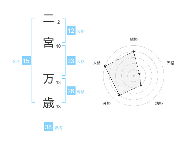 二宮 万歳さんを姓名の画数から五運を鑑定