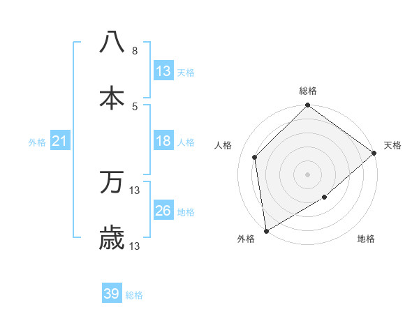 八本 万歳さんの外格は21画の5点!