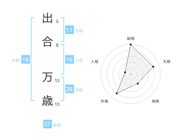 出合 万歳さんの総格は37画の5点!