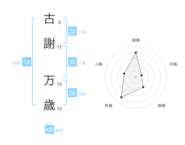 古謝 万歳さんを姓名の画数から五運を鑑定