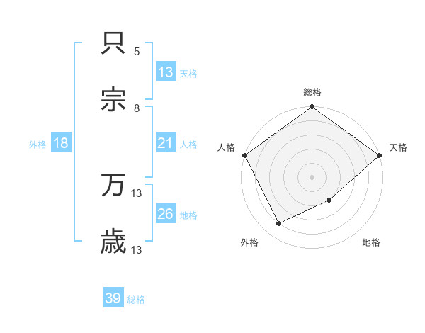 只宗 万歳さんを姓名の画数から五運を鑑定