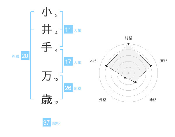 小井手 万歳さんを姓名の画数から五運を鑑定