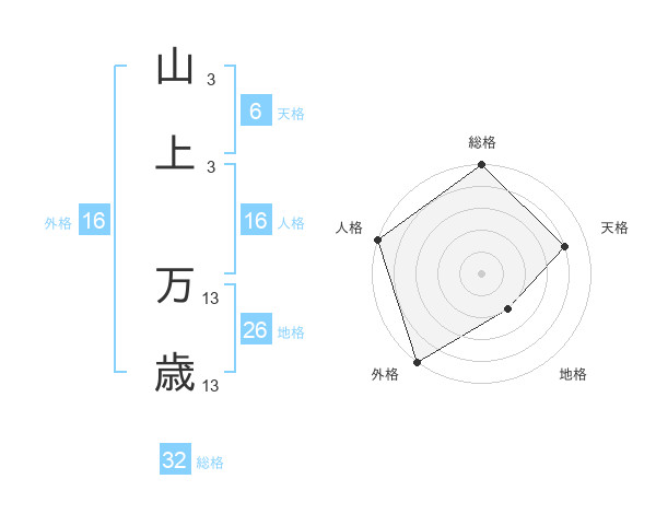 占い結果は姓名判断である以上、良い場合も悪い場合もありますが、決してお名前を誹謗中傷するものでなく、画数の自動計算によって得られたものです。また、本サイトの検索によって得られた鑑定結果で、第三者を誹謗中傷したり名誉を棄損するような行為を禁じます。