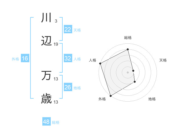 川辺 万歳さんを姓名の画数から五運を鑑定