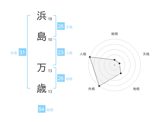 浜島 万歳さんを姓名の画数から五運を鑑定