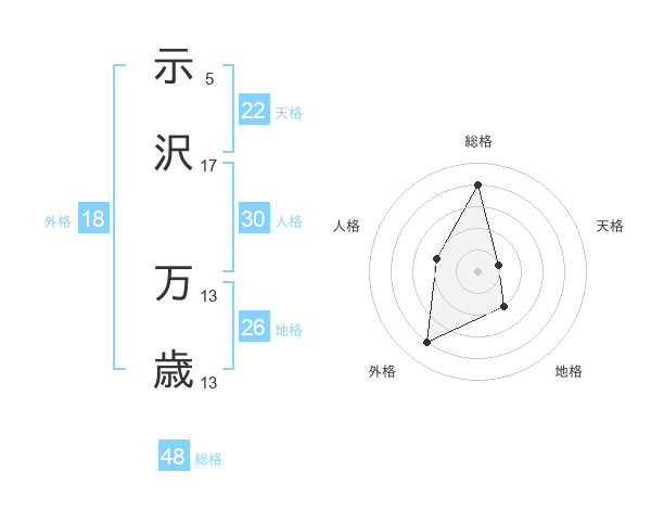 示沢 万歳さんを姓名の画数から五運を鑑定