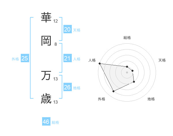 華岡 万歳さんの天格は20画の1点