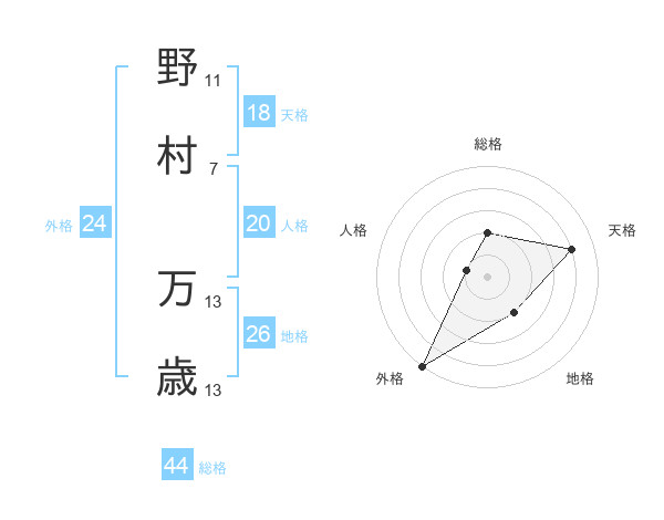 野村 万歳さんの天格は18画の4点!