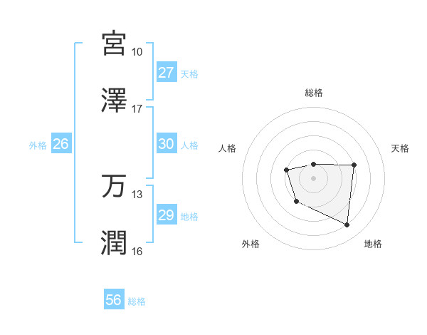 宮澤 万潤さんの総格は56画の1点!
