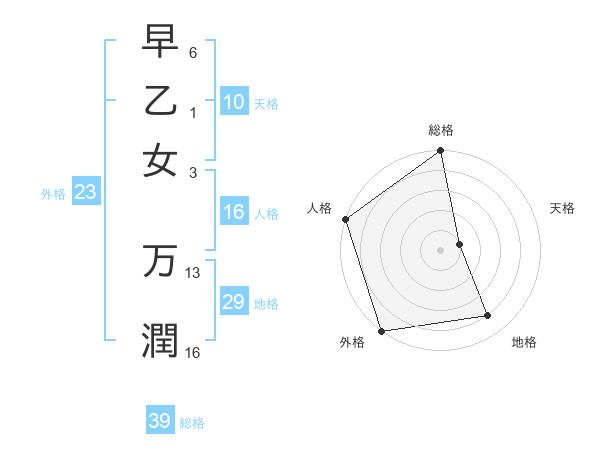 早乙女 万潤さんを姓名の画数から五運を鑑定