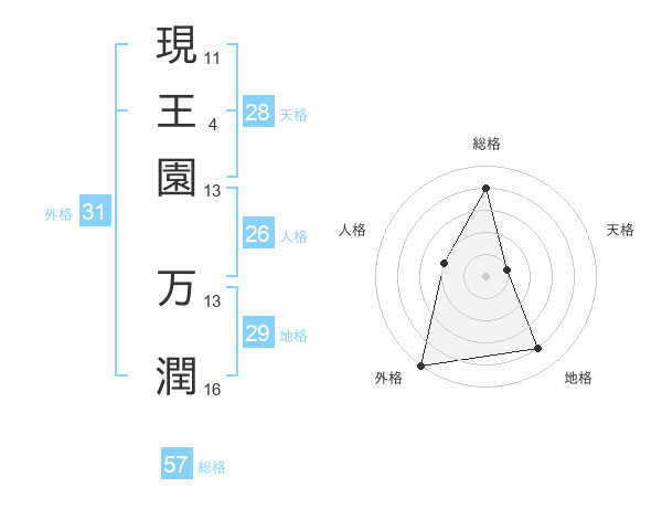現王園 万潤さんの総格は57画の4点!