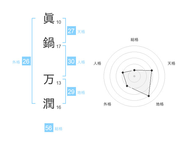 眞鍋 万潤さんを姓名の画数から五運を鑑定