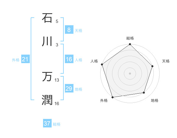 石川 万潤さんの総格は37画の5点
