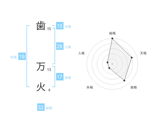 歯 万火さんの総格は32画の5点!