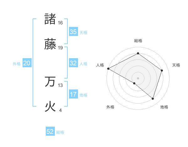 諸藤 万火さんの総格は52画の4点!