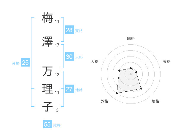 梅澤 万理子さんを姓名の画数から五運を鑑定