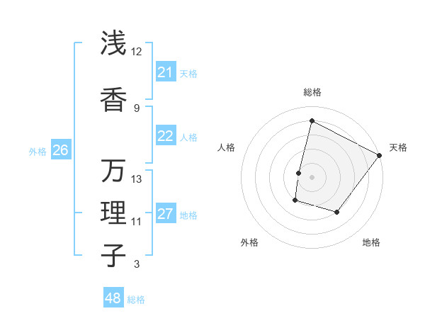 浅香 万理子さんを姓名の画数から五運を鑑定