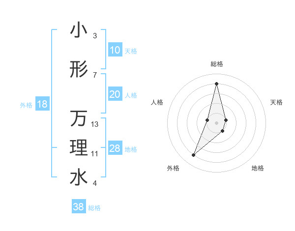 小形 万理水さんの総格は38画の4点!