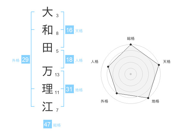 大和田 万理江さんを姓名の画数から五運を鑑定