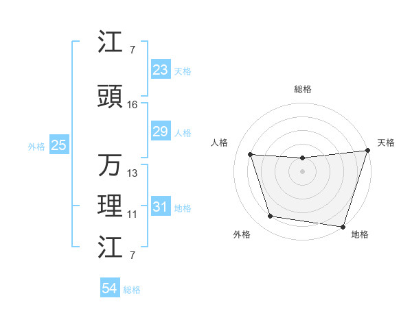 江頭 万理江さんを姓名の画数から五運を鑑定