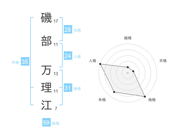 磯部 万理江さんを姓名の画数から五運を鑑定