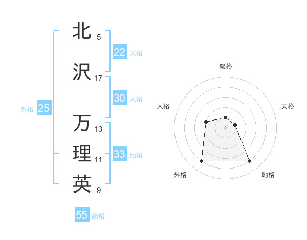 北沢 万理英さんを姓名の画数から五運を鑑定