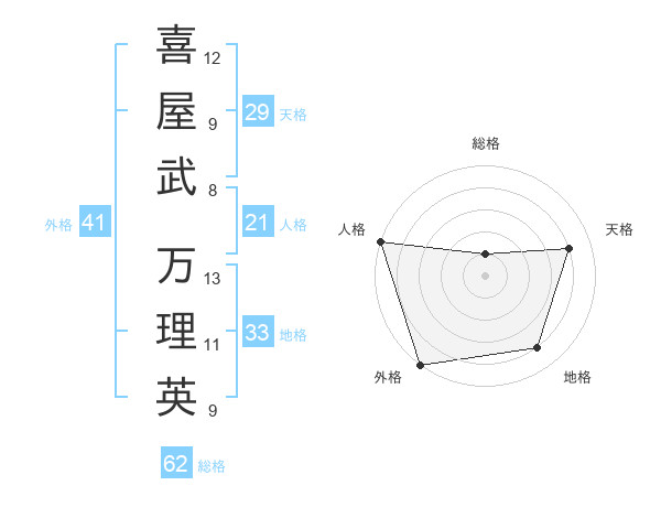 喜屋武 万理英さんを姓名の画数から五運を鑑定
