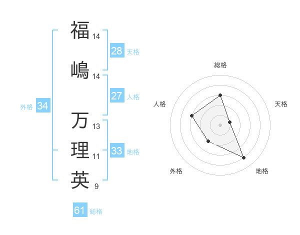 福嶋 万理英さんを姓名の画数から五運を鑑定