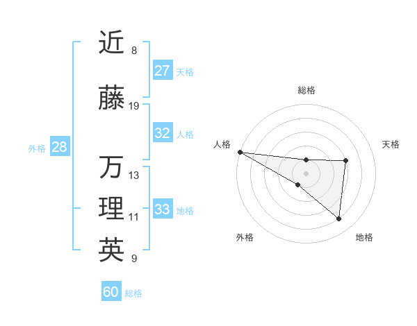 近藤 万理英さんを姓名の画数から五運を鑑定
