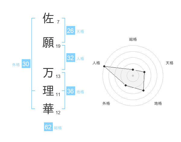 佐願 万理華さんを姓名の画数から五運を鑑定