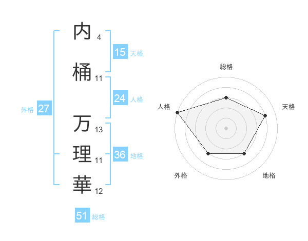 内桶 万理華さんの総格は51画の3点!