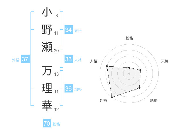 小野瀬 万理華さんの外格は37画の5点!