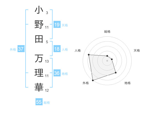 小野田 万理華さんを姓名の画数から五運を鑑定
