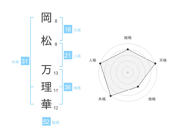 岡松 万理華さんを姓名の画数から五運を鑑定