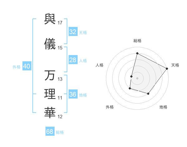 與儀 万理華さんの天格は32画の5点!