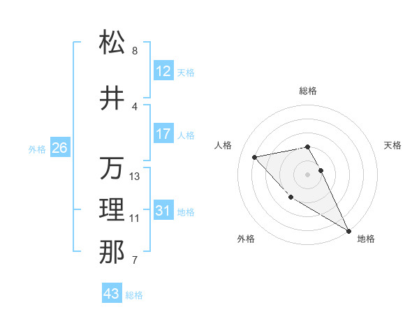 占い結果は姓名判断である以上、良い場合も悪い場合もありますが、決してお名前を誹謗中傷するものでなく、画数の自動計算によって得られたものです。また、本サイトの検索によって得られた鑑定結果で、第三者を誹謗中傷したり名誉を棄損するような行為を禁じます。