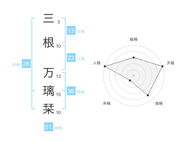 三根 万璃栞さんを姓名の画数から五運を鑑定