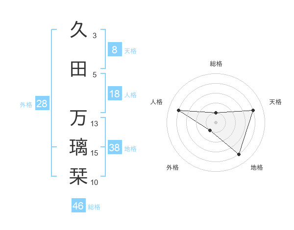 久田 万璃栞さんを姓名の画数から五運を鑑定