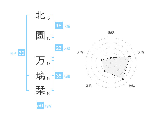 北園 万璃栞さんの天格は18画の4点