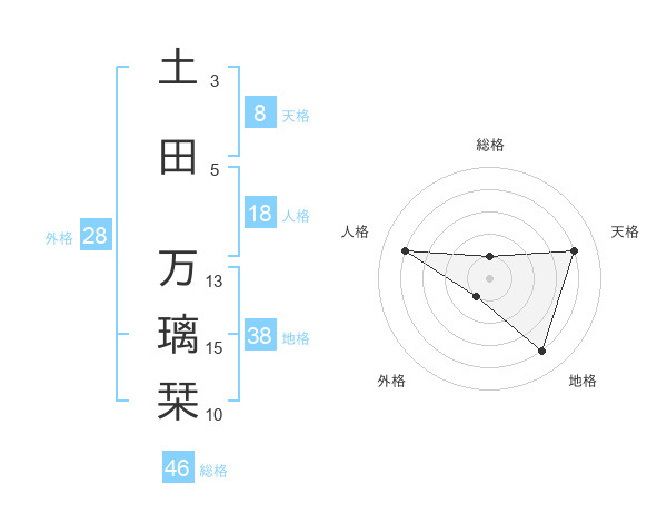 土田 万璃栞さんの地格は38画の4点