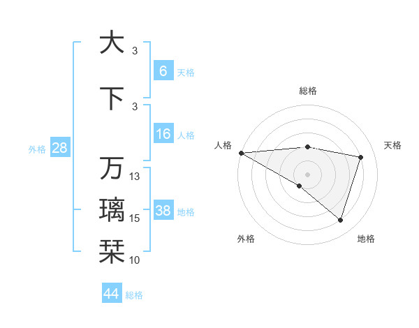 大下 万璃栞さんの総格は44画の2点