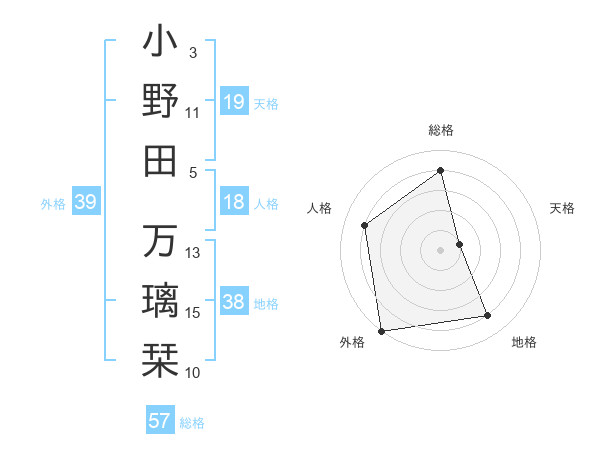 小野田 万璃栞さんを姓名の画数から五運を鑑定