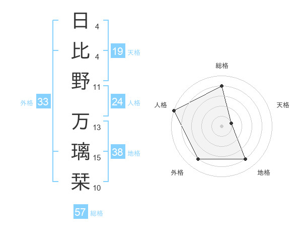 日比野 万璃栞さんの総格は57画の4点