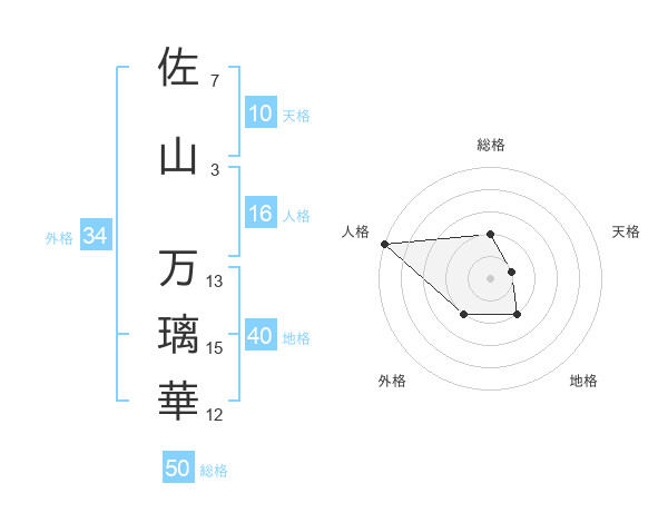 佐山 万璃華さんの総格は50画の2点!