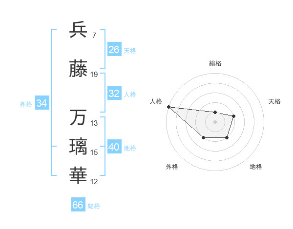 兵藤 万璃華さんの総格は66画の1点!