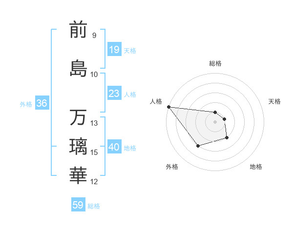 前島 万璃華さんを姓名の画数から五運を鑑定