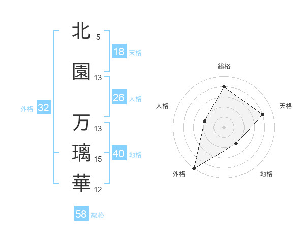 北園 万璃華さんを姓名の画数から五運を鑑定