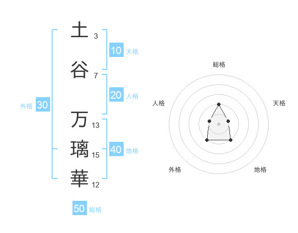 土谷 万璃華さんの総格は50画の2点!
