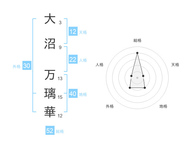 大沼 万璃華さんを姓名の画数から五運を鑑定