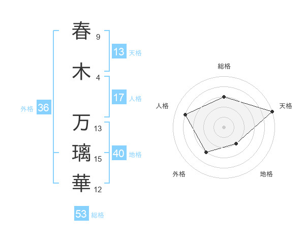 春木 万璃華さんを姓名の画数から五運を鑑定